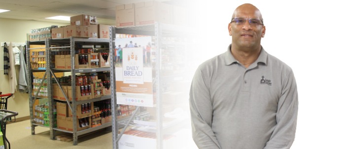 Derek Tyler was serving homeless veterans for Catholic Charities when an opportunity to combine his inventory control, warehousing and social services backgrounds became available. He was promoted to program director for Our Daily Bread Food Pantry at the beginning of 2022.